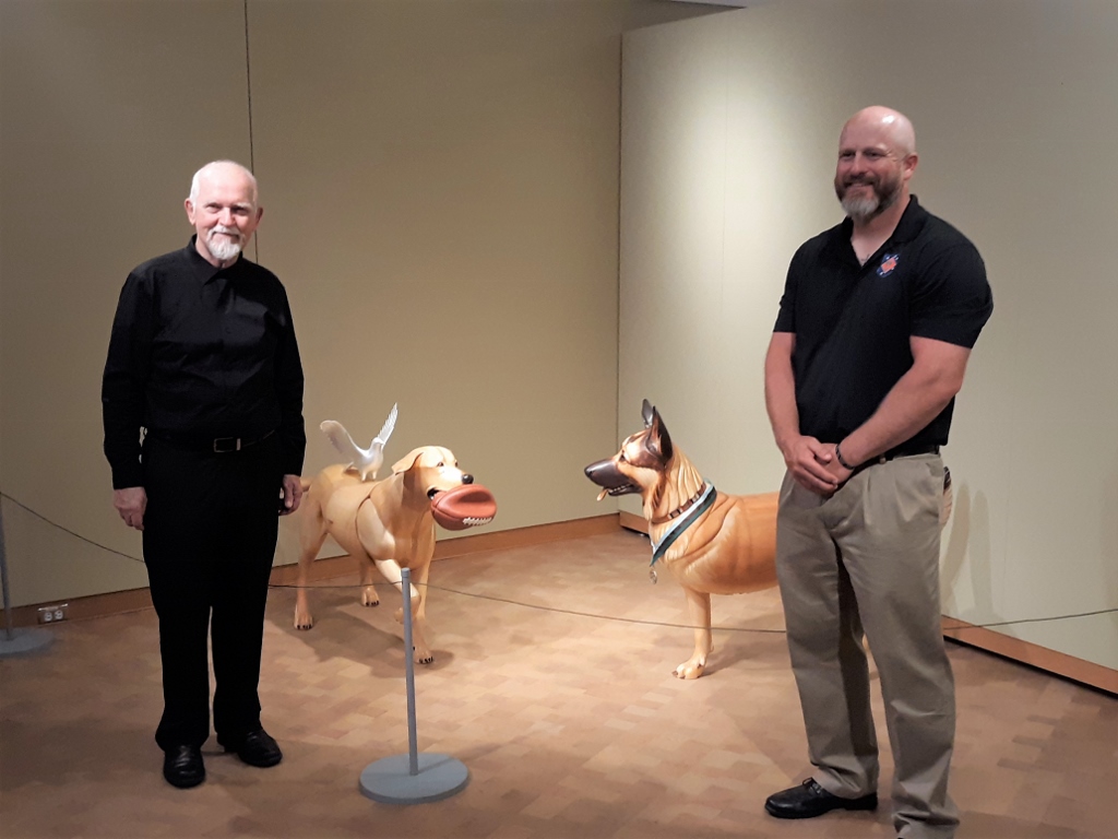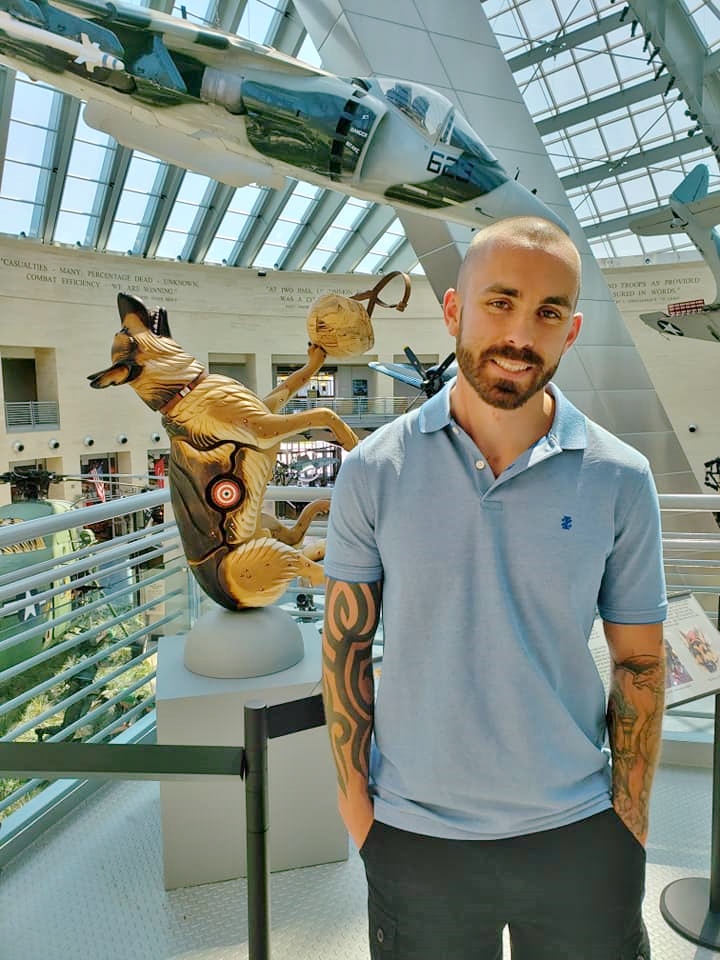 Chris Willingham, Marine dog handler of “Top Dog” Lucca K458 in Iraq in 2007, attends the opening of the