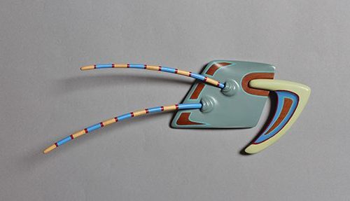 Acrylic paint on shaped wood.