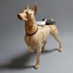 This harlequin colored Doberman, the last in the series of the Wounded Warrior Dogs Project, represents veterans of all wars that experience Post-Traumatic Stress Disorder (PTSD), formerly known as Battle Fatigue, Shell Shock and Post-Vietnam Syndrome. The doves on the back represent the stand-off of “light” and “dark” spirits when it comes to good and bad memories.